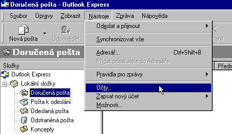 V menu "Nástroje" programu vyberte položku "Účty...".