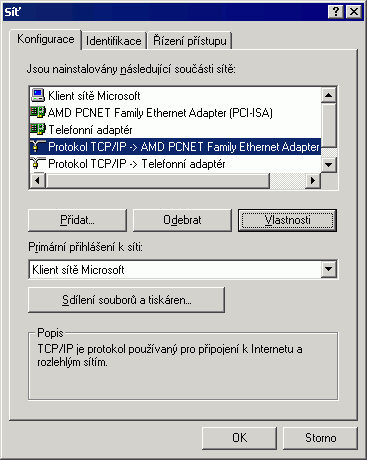 Klepněte na tlačítko Start, nabídka Ovládací panely, ikona Síť. Zde vyberte Protokol TCP/IP. Pokud jich máte v dialogovém okně víc, vyberte ten, který je navázán na vaši síťovou kartu. Klepněte na tlačítko Vlastnosti.