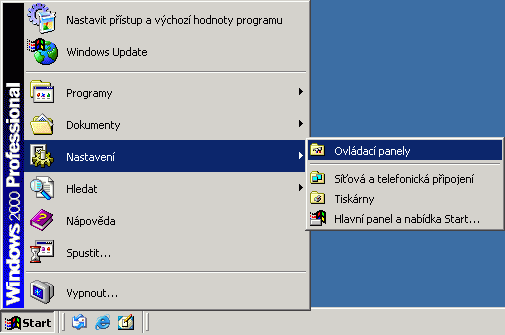 Spusťte Ovládací panely přes nabídku Start -> Nastavení -> Ovládací panely.