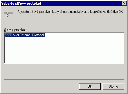 Vyberte PPP over Ethernet Protocol a stiskněte tlačítko OK.