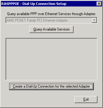 V dialogu klikněte na tlačítko Create a Dial-Up Connection for the selected Adapter, pro ukončení stiskněte tlačítko Exit.