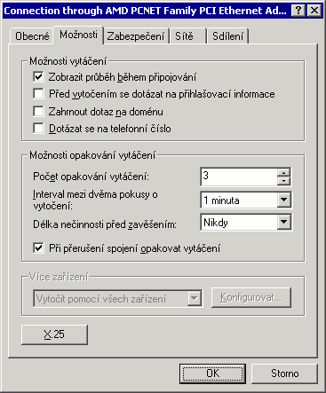 V zobrazeném dialogovém okně přejděte na záložku Možnosti a zde zrušte zaškrtnutí u položky Před vytočením se dotázat na přihlašovací informace.