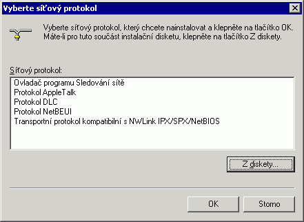 V dialogu Vyberte síťový protokol klikněte na tlačítko Z diskety.