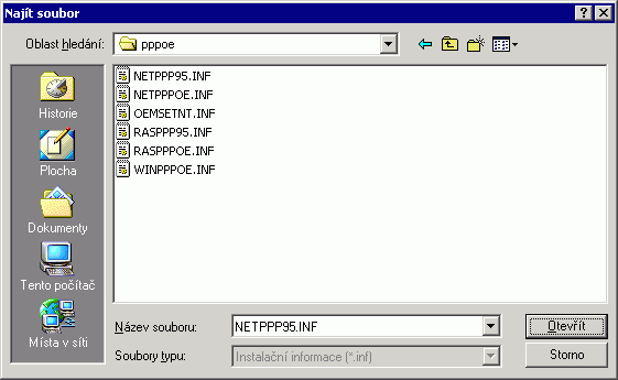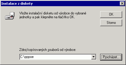 a vyberte cestu k adresáři s rozbalenými soubory PPPoE protokolu (zde např. C:/pppoe).